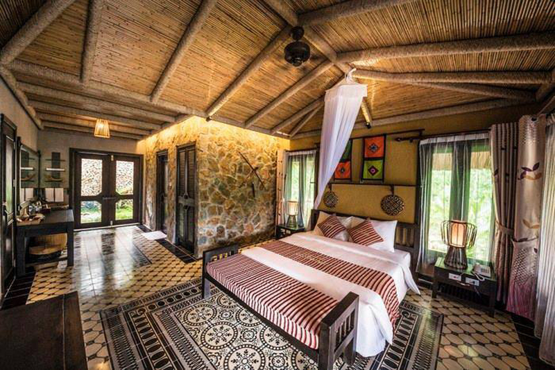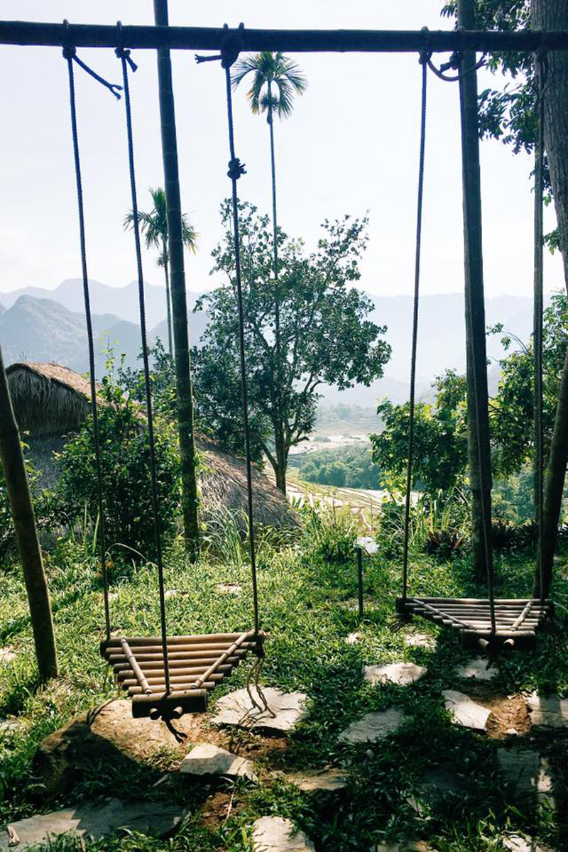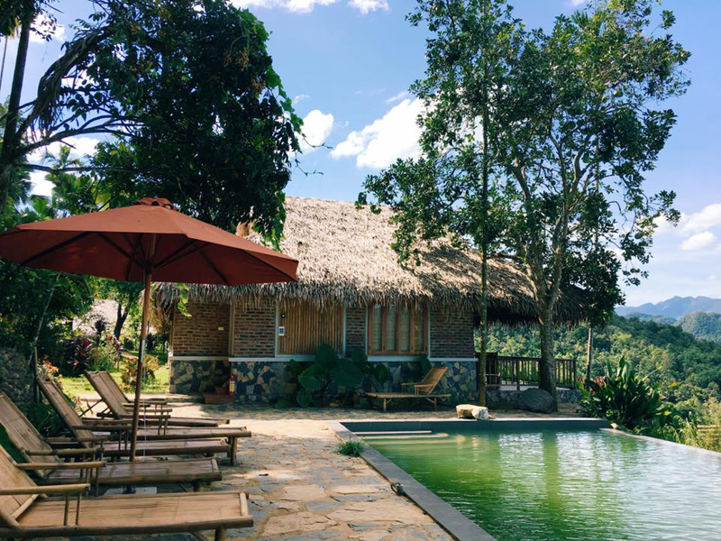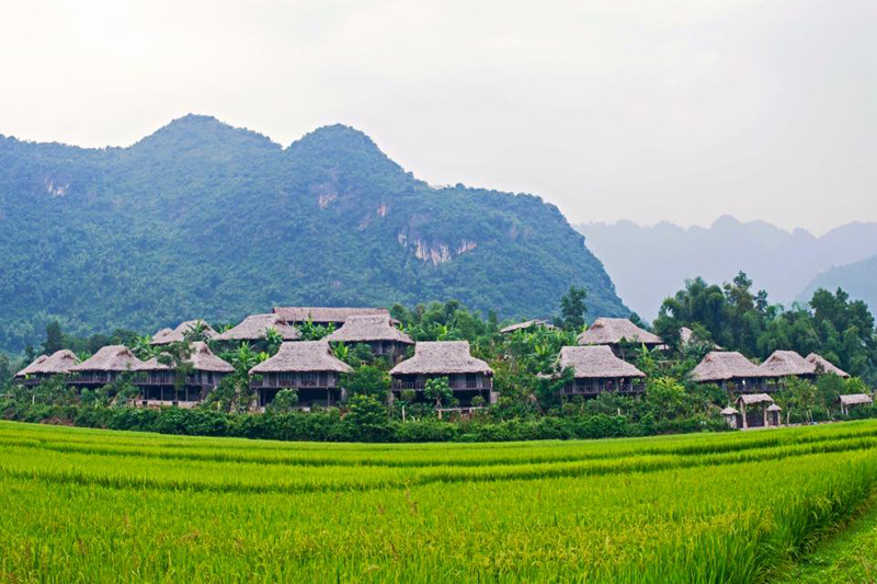 Hệ thống nhà sàn theo mô hình sinh thái mới này được xây dựng ngay sát những ruộng bậc thang của Pu Luong, nằm gần với Bản Lác Mai Châu, rừng Cúc Phương Ninh Bình, cách Hà Nội không xa.