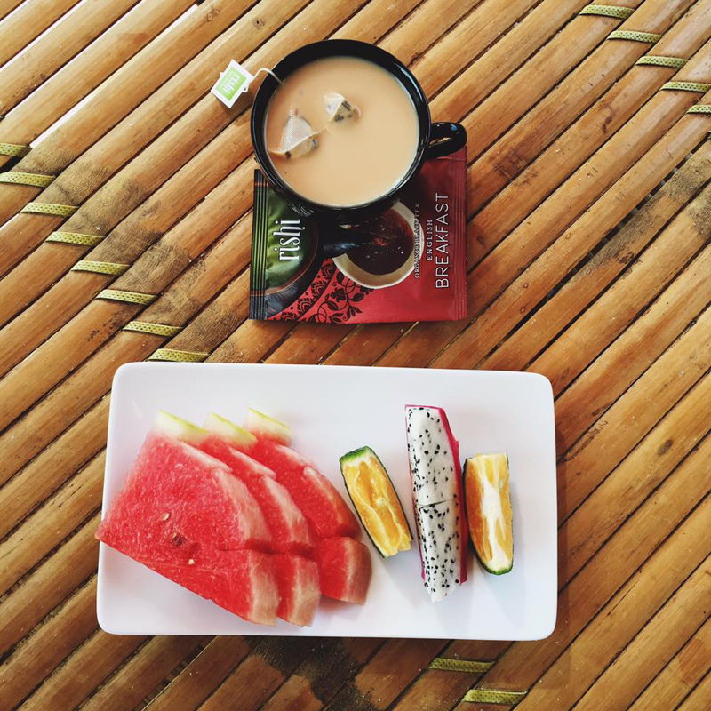 Mỗi sớm bên ly trà và trái cây tươi. Ảnh Facebook Ly Tạ
