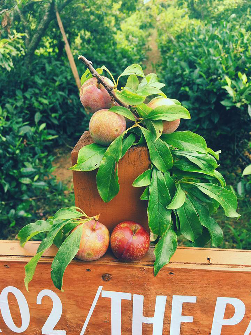 Vườn mận đào được trồng trong khu để khách thăm quan, trẩy hái.